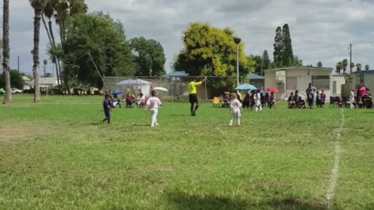 Un poste cae sobre una cancha de fútbol en un parque de Pomona y pone en riesgo la vida de decenas de niños
