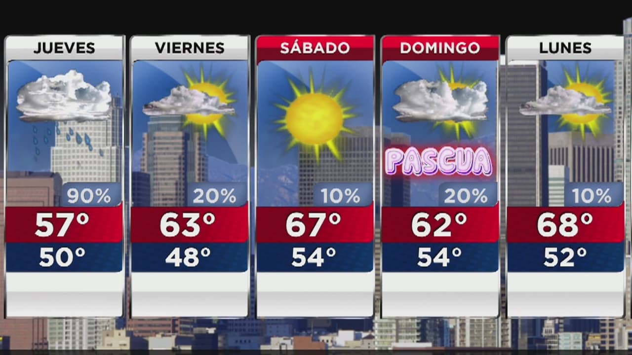 El pronóstico indica que habrá un 90% de probabilidad de precipitaciones en todo el sur de California. Entretanto, las temperaturas máximas serán de unos 57 grados Fahrenheit con sensaciones térmicas similares.