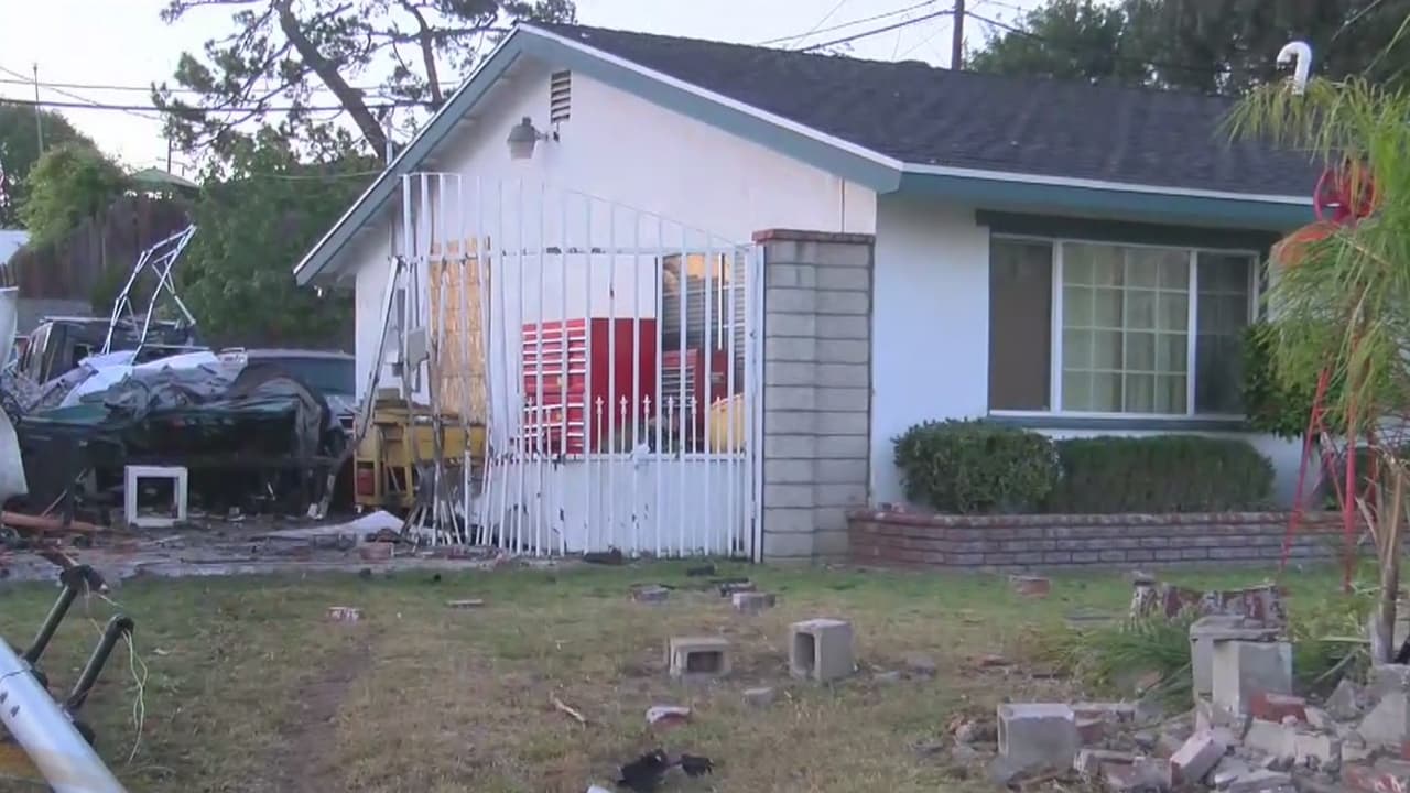 Un vehículo chocó contra varios postes y luego quedó incrustado en una casa de California