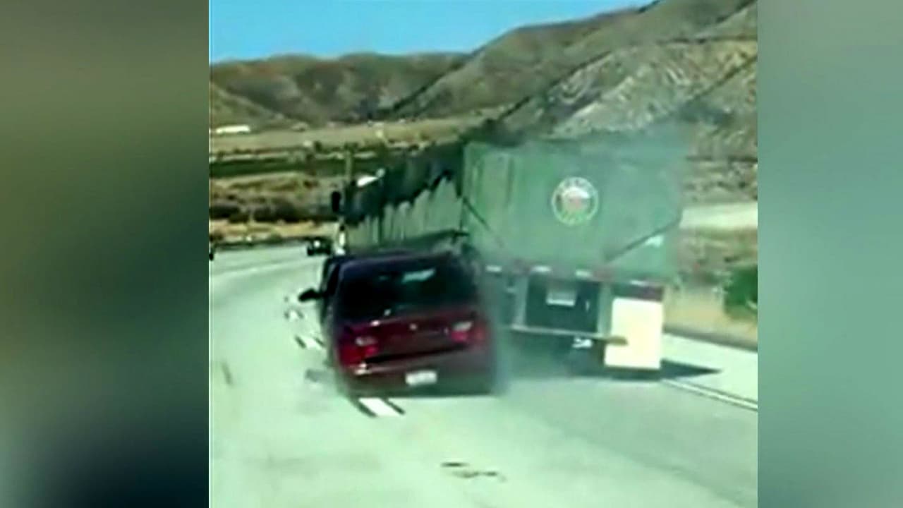 Un vehículo con una persona adentro fue arrastrado por un camión en Cajon Pass, California