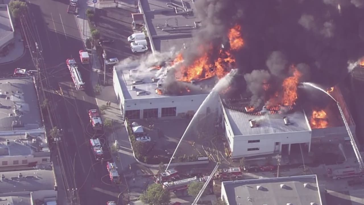 Un voraz incendio destruye un edificio comercial en un vecindario de Los Ángeles