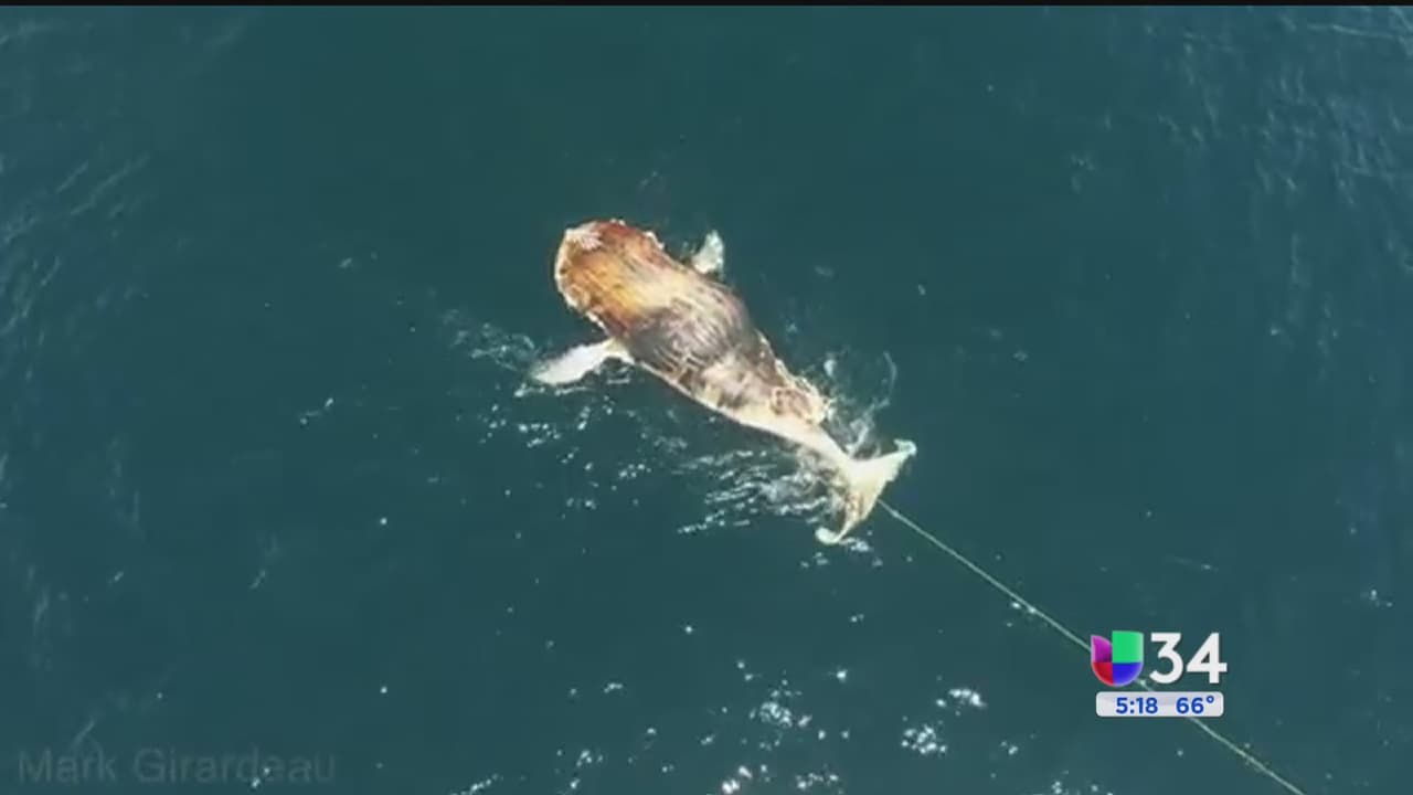 Una ballena muerta regresa por cuarta vez a la costa del sur de California