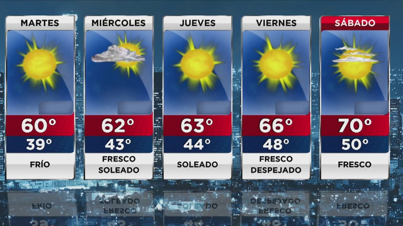 Las temperaturas máximas llegarán a los 60 grados Fahrenheit, las mínimas se ubicarán en los 39, los cielos se mantendrán mayormente despejados y el sol estará presente en gran parte de la jornada.