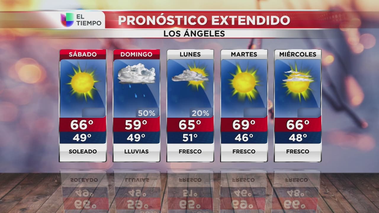 A partir de la noche del sábado se espera niebla en la costa, y vientos fuertes. El lunes en la tarde las condiciones serán secas pero frías hasta el jueves por la tarde. Existe la posibilidad de más lluvia y nieve en las montañas a fines de la próxima semana.