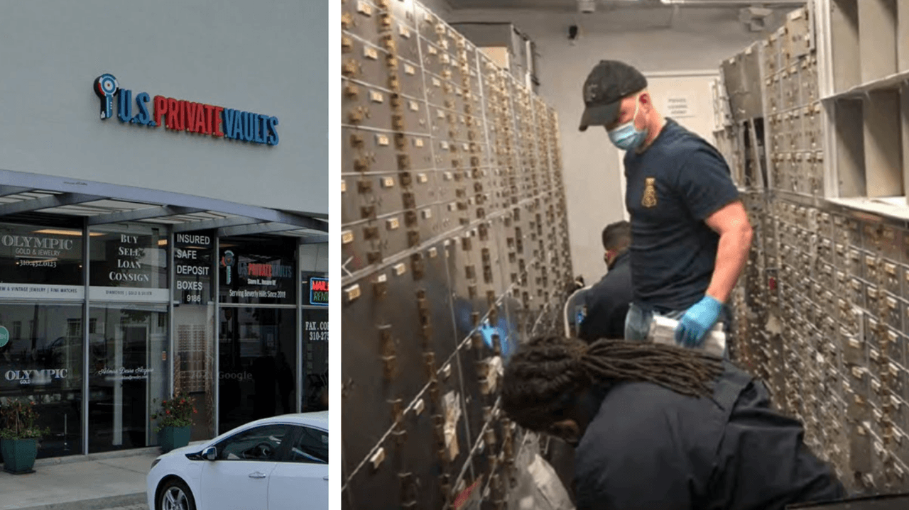 U.S. Private Vaults, con sede principal en Nevada, operaba un centro de custodia con aproximadamente 396 cajas de seguridad, localizado en el bulevar West Olympic en el área de Beverly Hills en Los Ángeles, California.