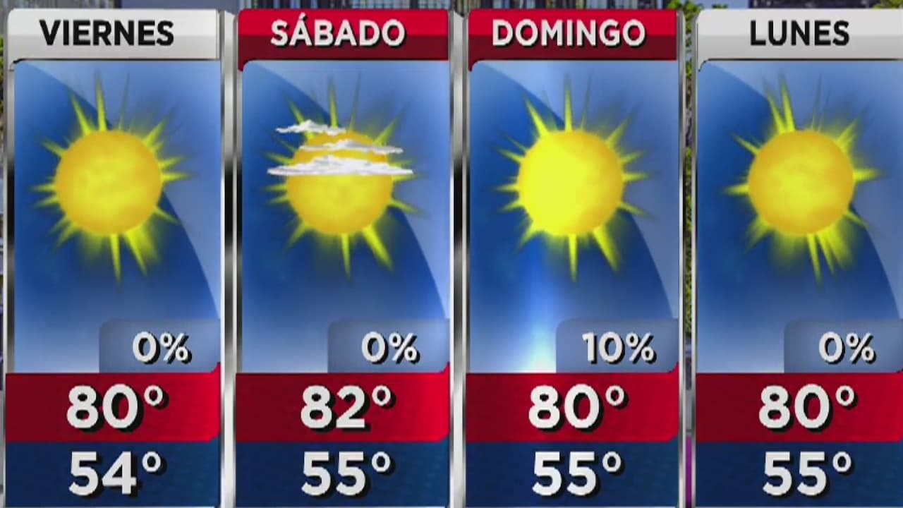 La temperatura máxima para hoy será de 80 grados y sin probabilidades de lluvia. El fin de semana se mantendrá cálido y con cielo despejado.