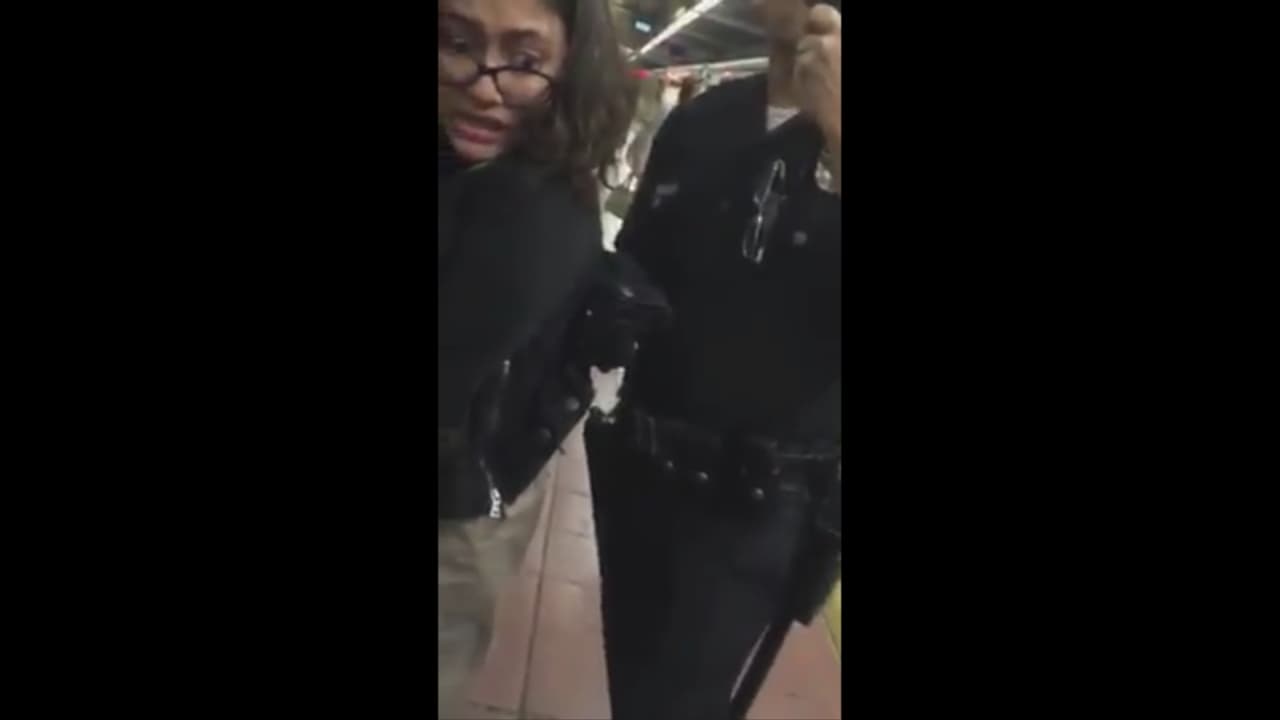 En uno de los videos publicados en Facebook se observa a un agente de la Policía de Los Ángeles (LAPD) que ordena a una pasajera que se levante de su asiento y cuando el tren llega a la estación empiezan a forcejear.