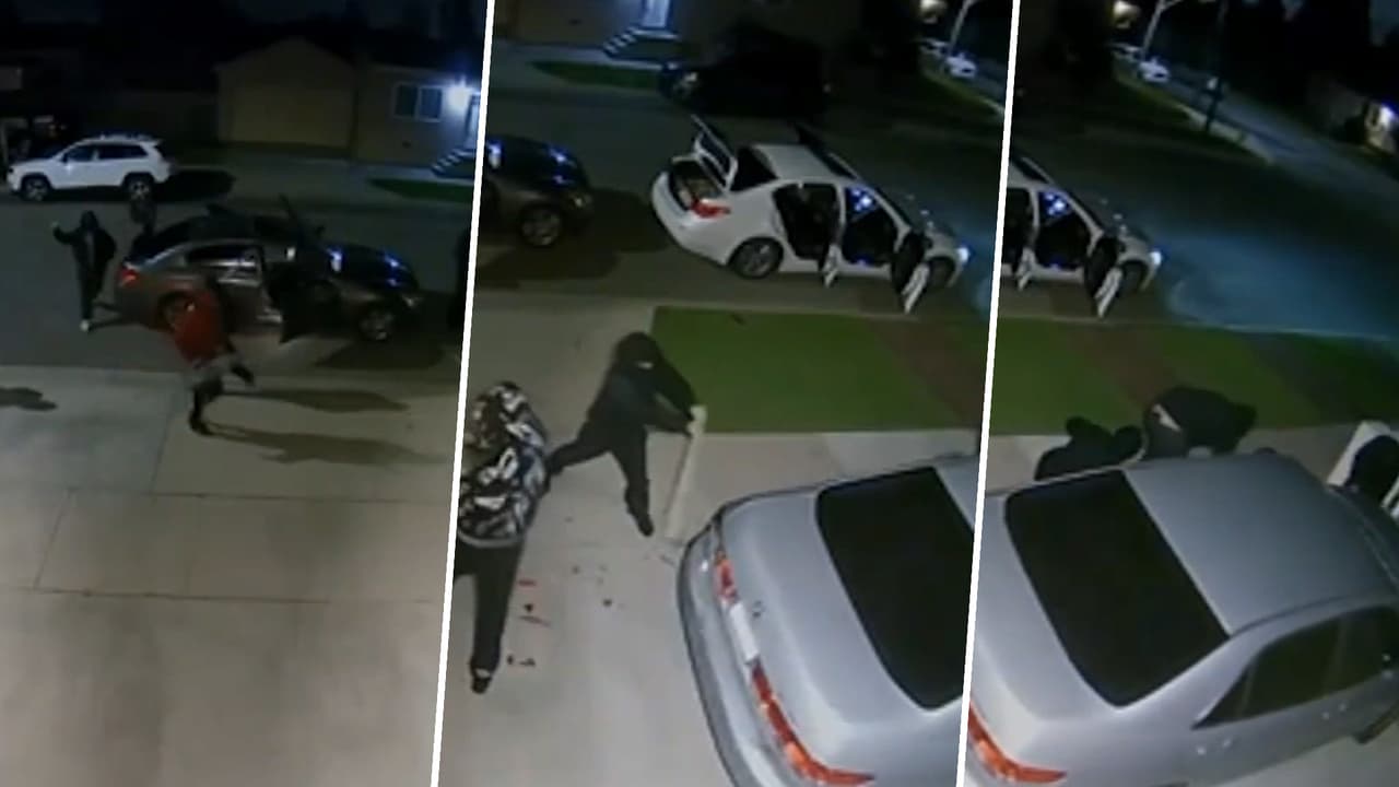 En el video, se aprecia a los hombres vandalizar un auto que está estacionado en una casa, y mientras unos lo golpean con un bate de béisbol, otros hombres levantan el vehículo con un gato hidráulico para extraer el convertidor catalítico.