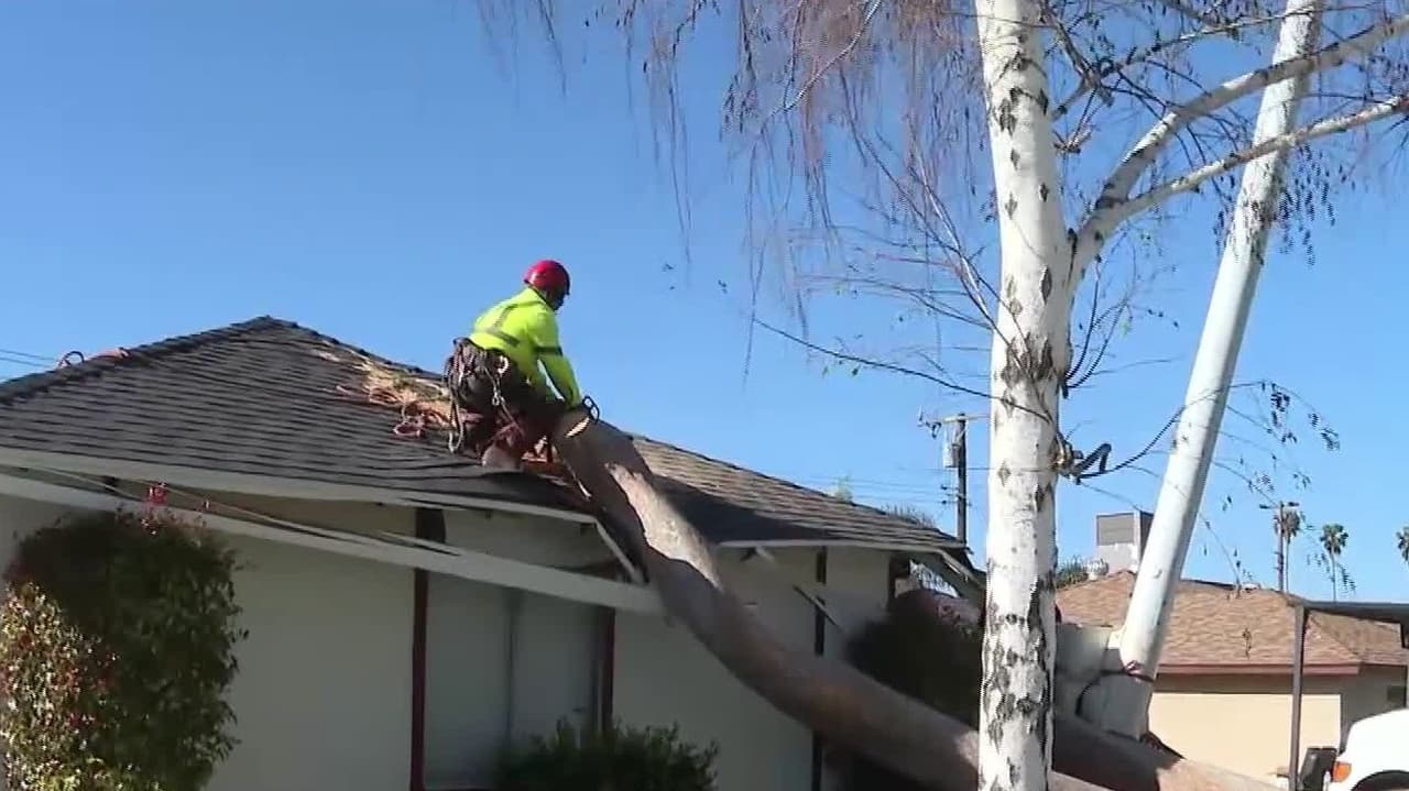 Vientos de Santa Ana tumban árboles en Simi Valley y Lake Balboa, causando daños y apagones