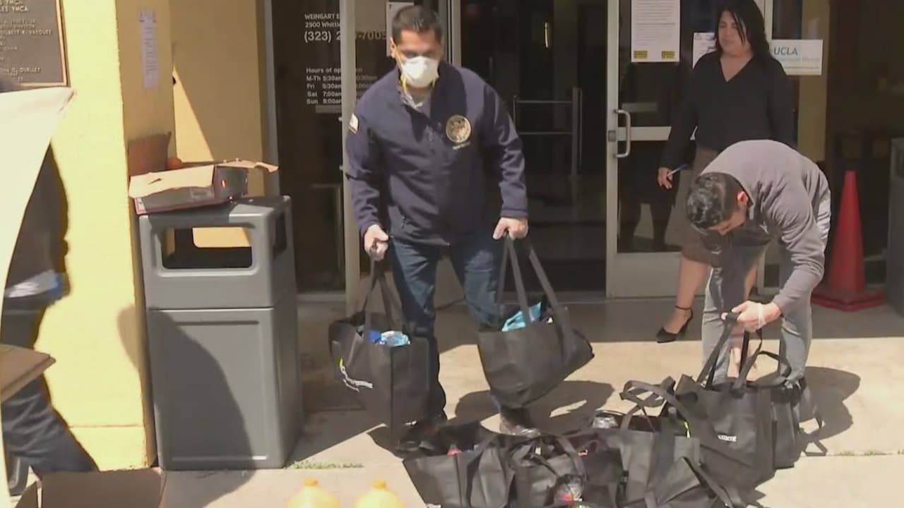 Voluntarios entregan alimentos a ancianos en Boyle Heights en medio de la crisis por el coronavirus