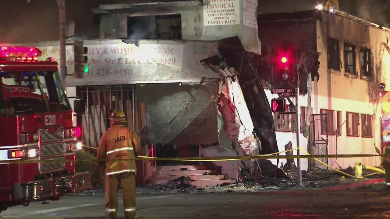 El fuego comenzó hacia las 7:30 de la noche de este viernes en el edificio ubicado en la cuadra 1,200 de la avenida Vermont. Los bomberos intentan sofocar las llamas y evitar que la estructura colapse, mientras que ingenieros llegaron a la escena para evaluar su demolición.