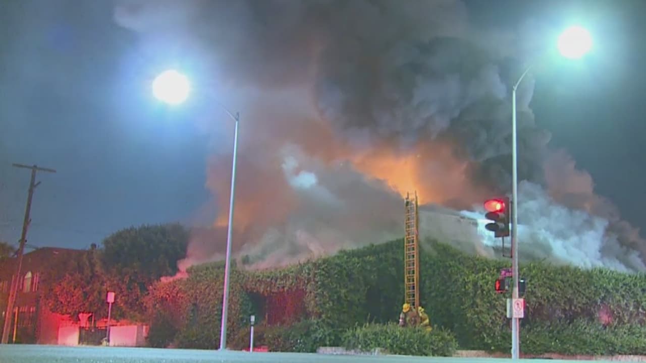 Voraz incendio consume un edificio vacío aledaño al coliseo de Los Ángeles