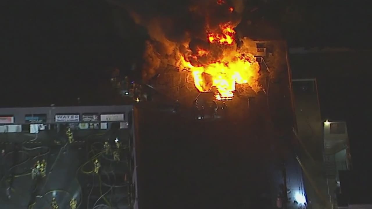 Voraz incendio consumió gran parte de un centro comercial de Van Nuys