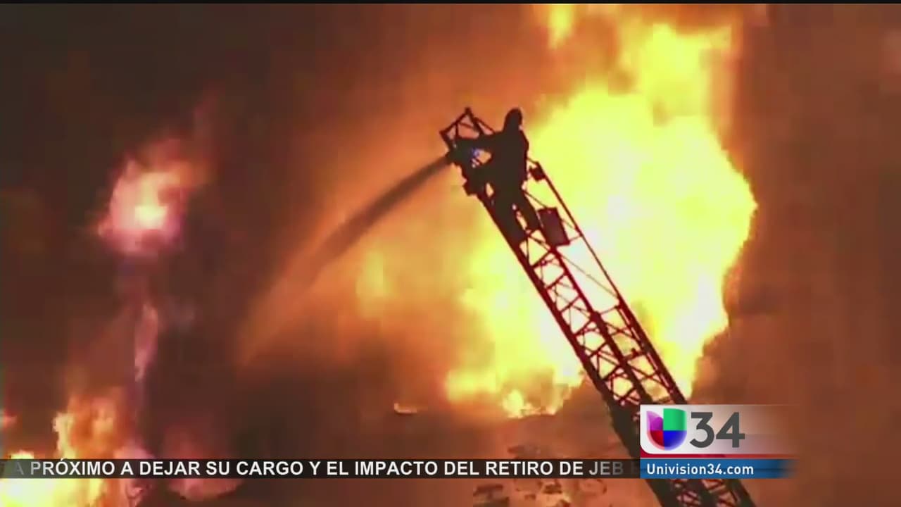 Voraz incendio industrial en Rancho Dominguez