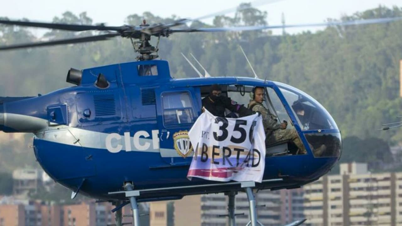 El presidente Nicolás Maduro denunció el hecho como un "ataque terrorista". La aeronave, que es del Cuerpo de Investigaciones Científicas, Penales y Criminalísticas, llevaba un cartel con el emblema "350 Libertad".