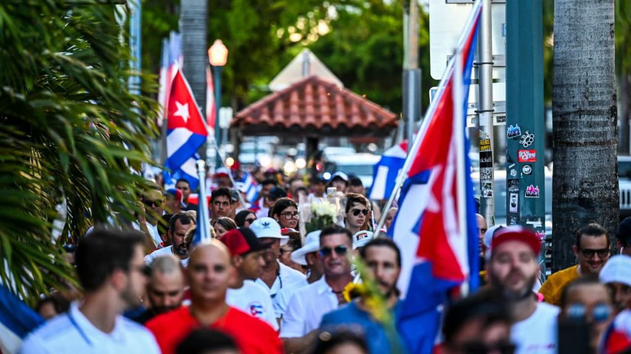 A un año de las masivas e históricas protestas del 11 de julio en Cuba, miembros del exilio en el sur de Florida se tomaron las calles, vestidos de blanco, con banderas y girasoles. Gritando arengas como “¡Abajo el comunismo!” y “¡Patria y Vida!”, honraron a quienes se manifestaron en la isla contra el régimen castrista. Los participantes también recordaron a quienes siguen detenidos.