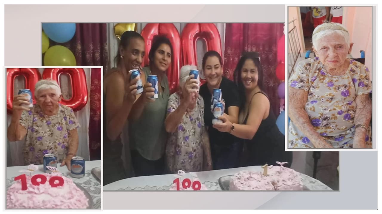 Acelia Rodríguez, residente de Caney en Santiago de Cuba, celebró sus 100 años de vida rodeada con familia. Acelia festejó bailando y tomando cerveza.