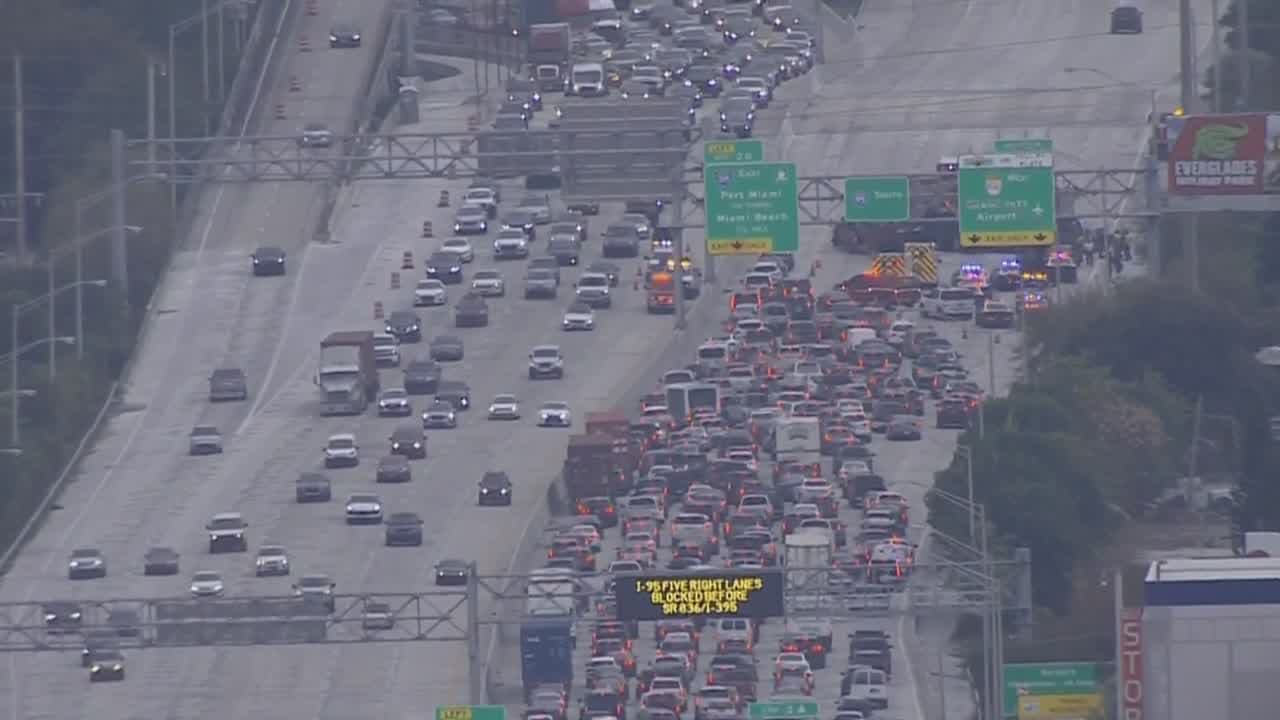 Accidente de tráfico en la I-95 mantiene varios carriles cerrados