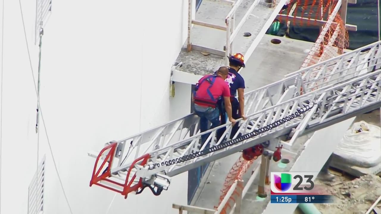 Accidente deja a dos trabajadores colgando de andamio en Hallandale Beach