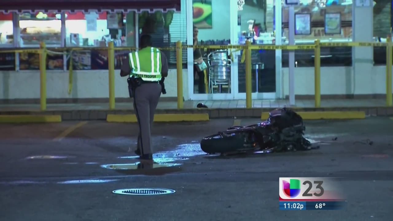 Testigos dijeron que el conductor de la motociclieta hacía piruetas en la calle cuando chocó con un auto y salió expulsado.