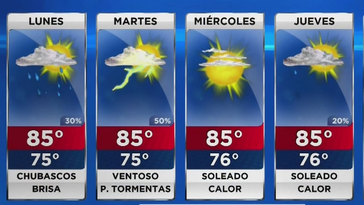 Este lunes primero de mayo la temperatura será de 85 grados. Habrá chubascos y brisa, así que preparen los paraguas.