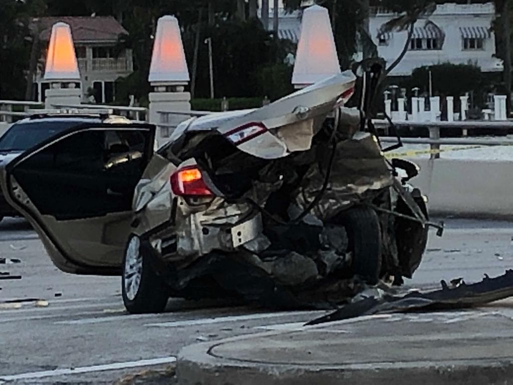Dominguez manejaba un Ford Mustang del 2013, según las autoridades por encima del límite de velocidad, cuando chocó a un Toyota Camry que se encontraba detenido en una semáforo en rojo, en la intersección de Fountain Street y el McArthur Causeway.
