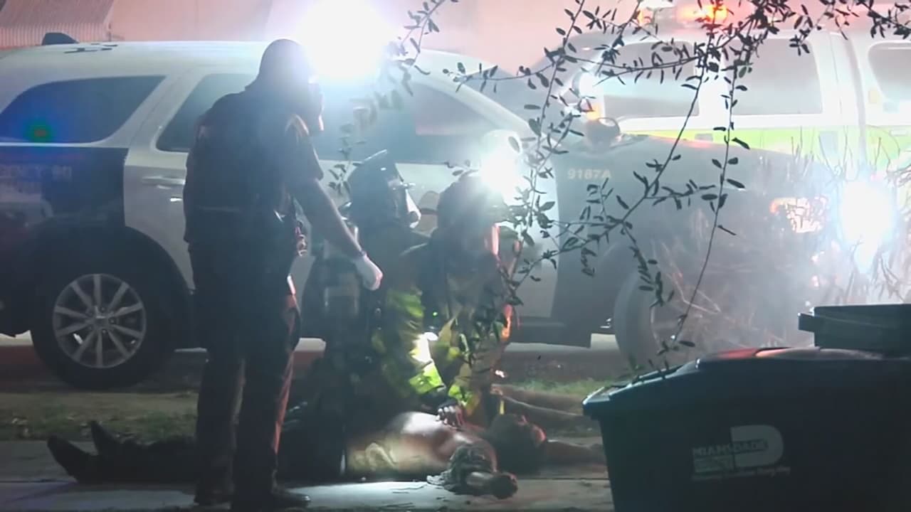 Decenas de bomberos de Miami-Dade llegaron hasta una casa ubicada en Brownsville para controlar un incendio que lamentablemente cobró la vida de dos personas. Un hombre fue esposado en la escena.