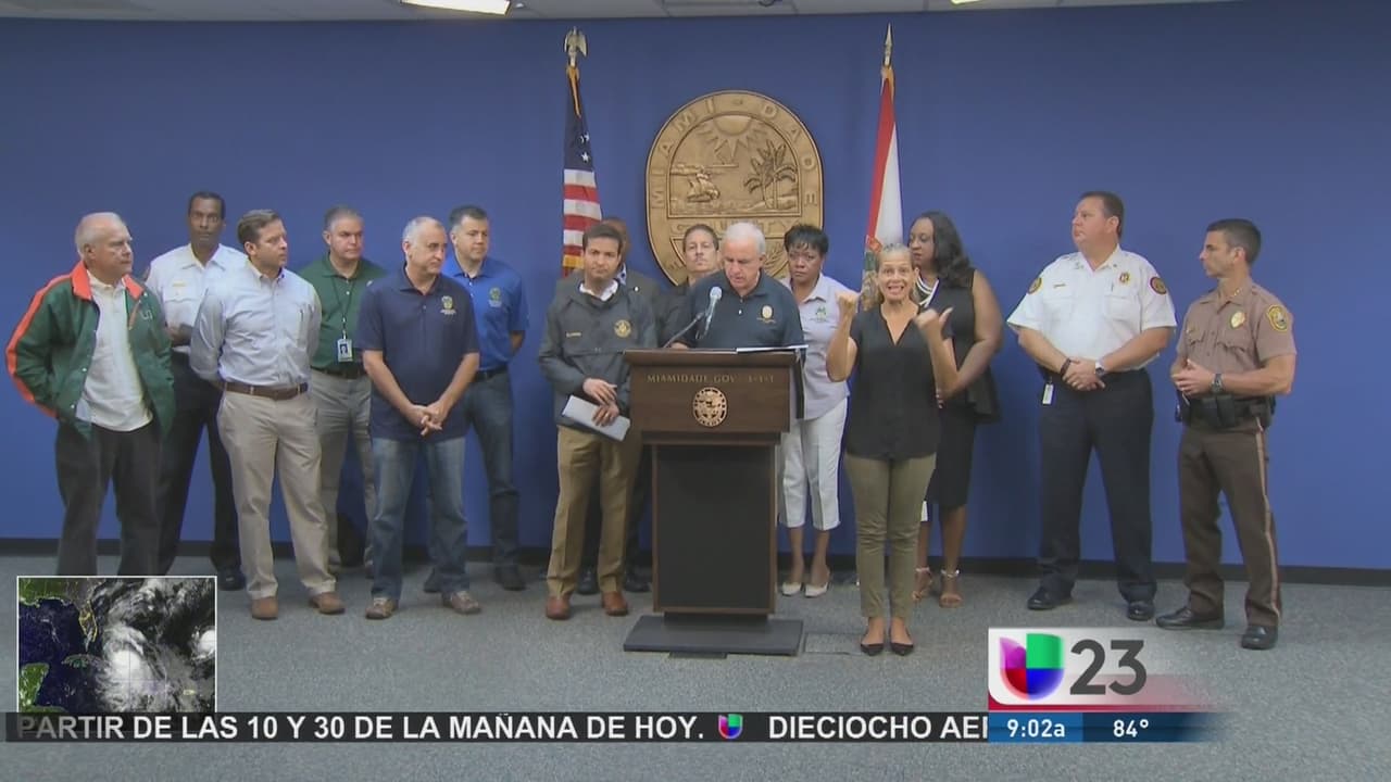 El alcalde de Miami-Dade, Carlos Giménez, urgió a los residentes del condado a mantenerse seguros ante la llegada del huracán Matthew, recordó algunos datos sobre los albergues y números telefónicos de emergencia.