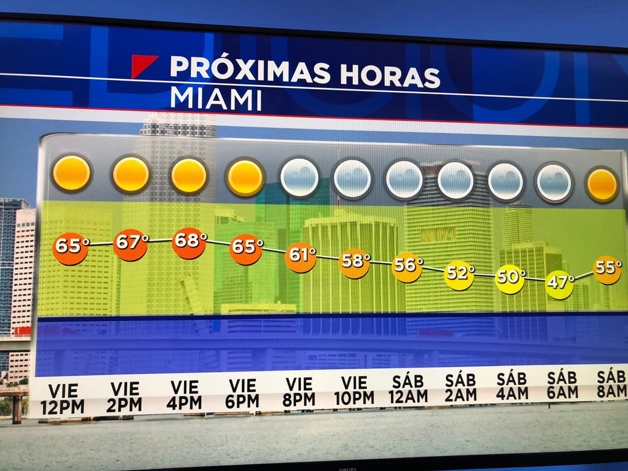 “Amanece muy frío en Miami, con cielos despejados”, dijo Javier Serrano, meteorólogo de Univision 23.