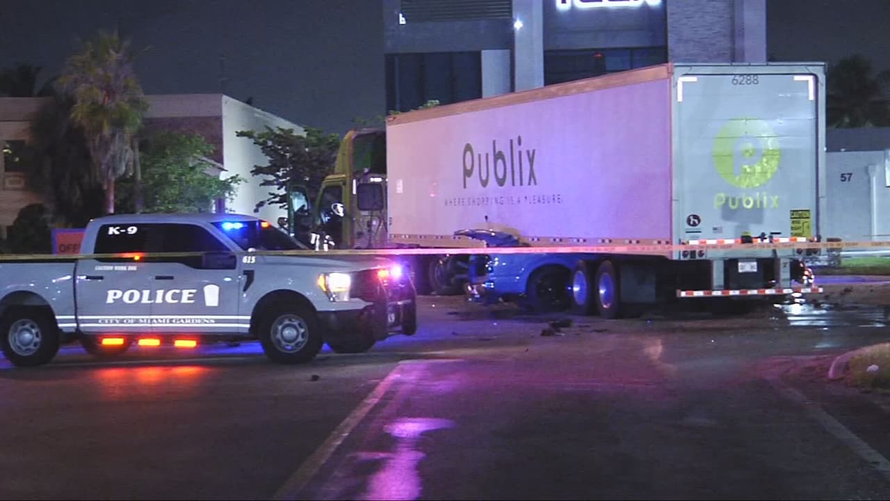 La policía de Miami Gardens investiga un aparatoso accidente que dejó a una persona muerta la madrugada de este lunes. Una camioneta quedó completamente atrapada debajo de una rastra de Publix.