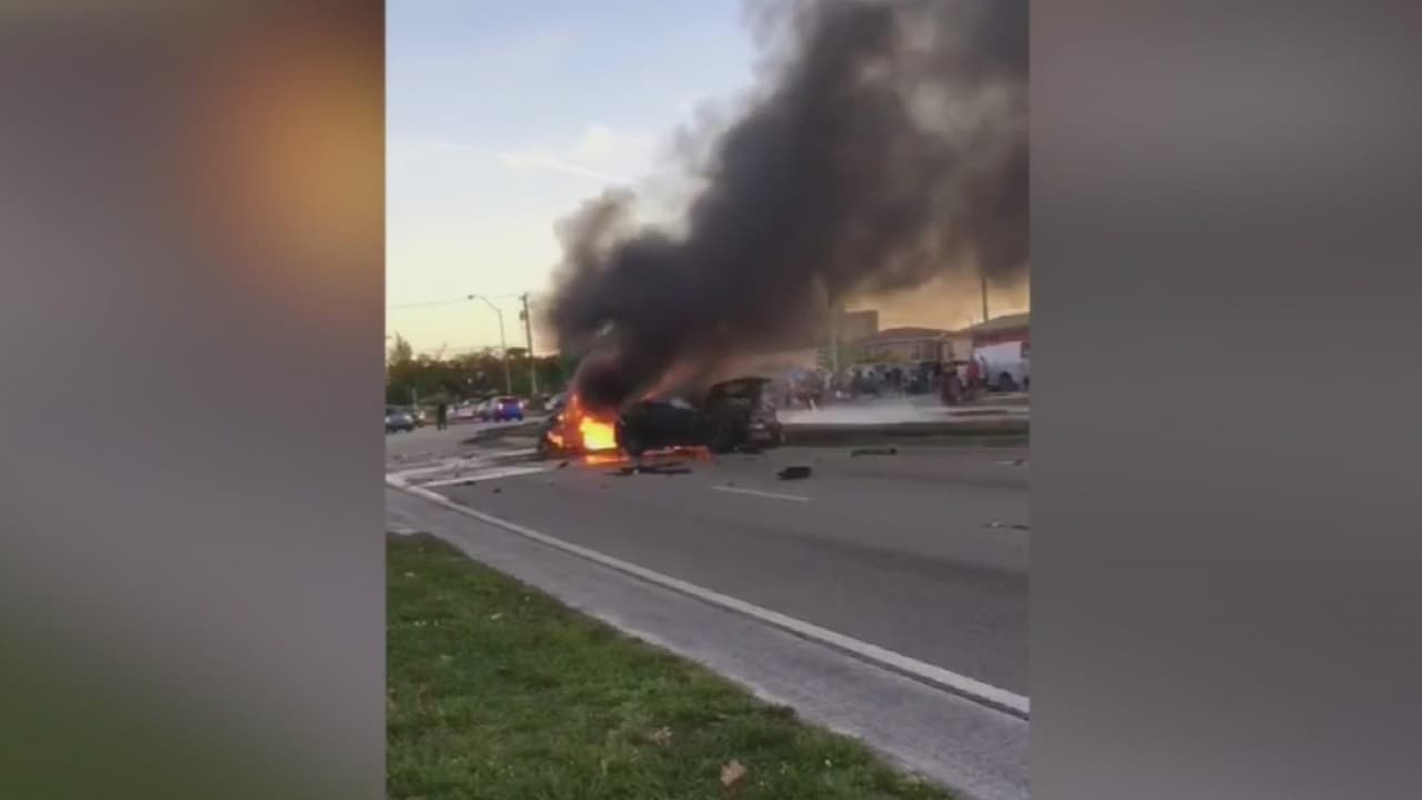 Aparatoso accidente en Hialeah cobra la vida de una persona y deja un vehículo prendido en llamas