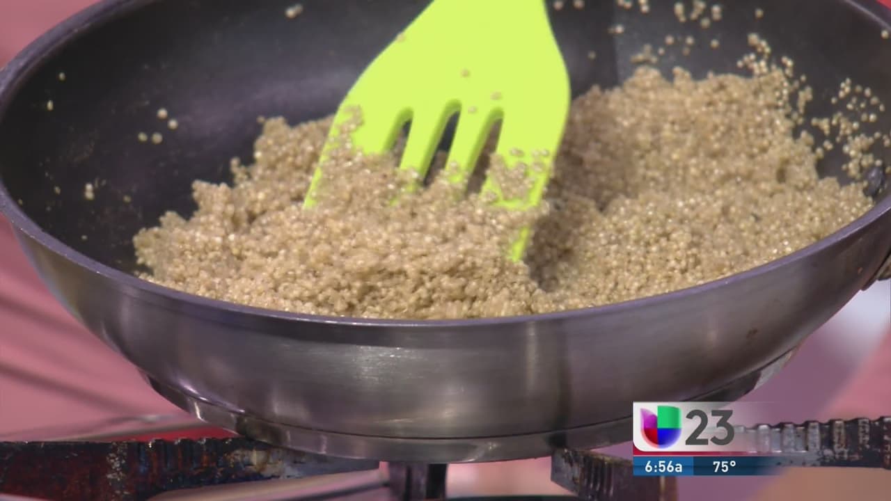 Aprenda a hacer quinua y sustituya el arroz por este alimento alto en proteínas. Además, prepare un aderezo que no añadirá muchas calorías a su ensalada.