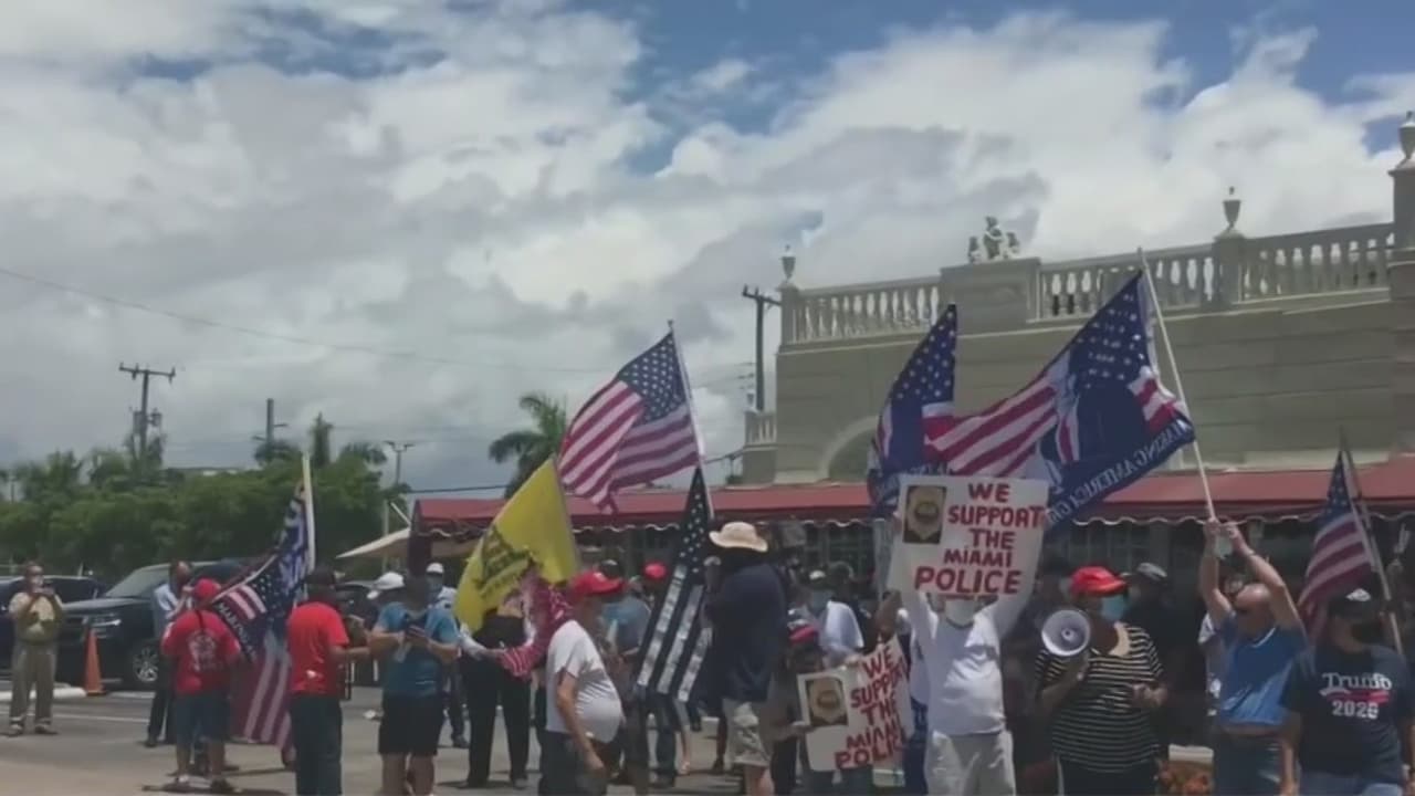 Este miércoles, un grupo de manifestantes se reunió en frente del restaurante Versailles para mostrar su apoyo a los oficiales. La movilización fue convocada por la organización del exilio cubano Vigilia Mambisa. "Nosotros estamos aquí para servirles", dijo el vocero de la policía de Miami, quien asistió a la protesta para agradecer el respaldo de la comunidad.