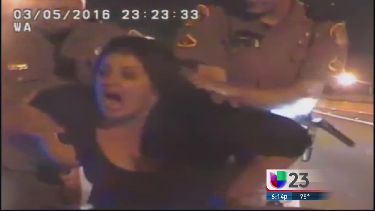 Colleen Loughman, de 43 años, quedó grabada en video mientras gritaba que iba a "llamar a CNN", cuando los agentes trataban de arrestarla.