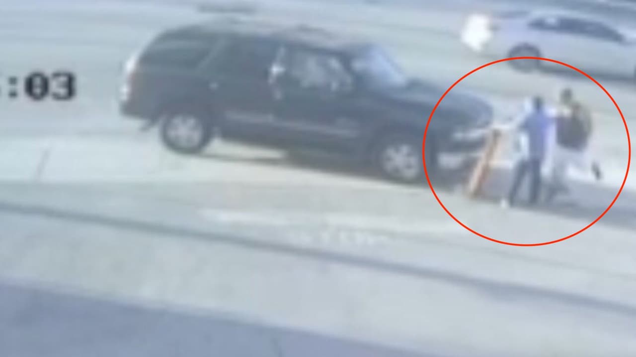 Un video muestra cuando un hombre que estaba caminando, fue interceptado por un sujeto que se bajó de una camioneta SUV Chevrolet, de color verde oscuro.