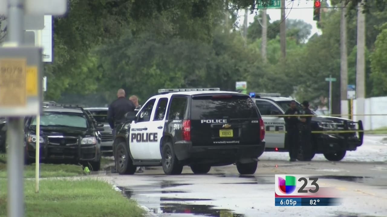 Un hombre fue herido de bala mientras era arrestado por haber asesinado a su esposa en Hollywood.