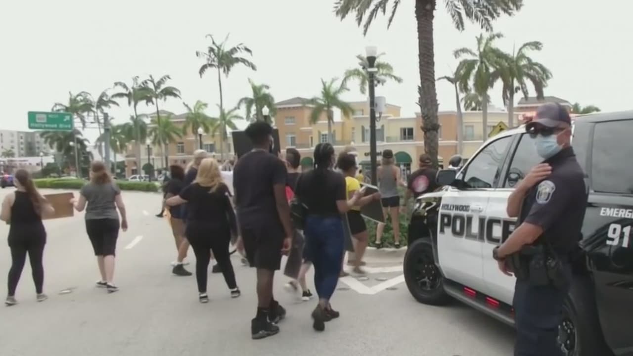 Arrestan a varias personas durante una marcha que recorrió un parque de Hollywood en memoria de George Floyd