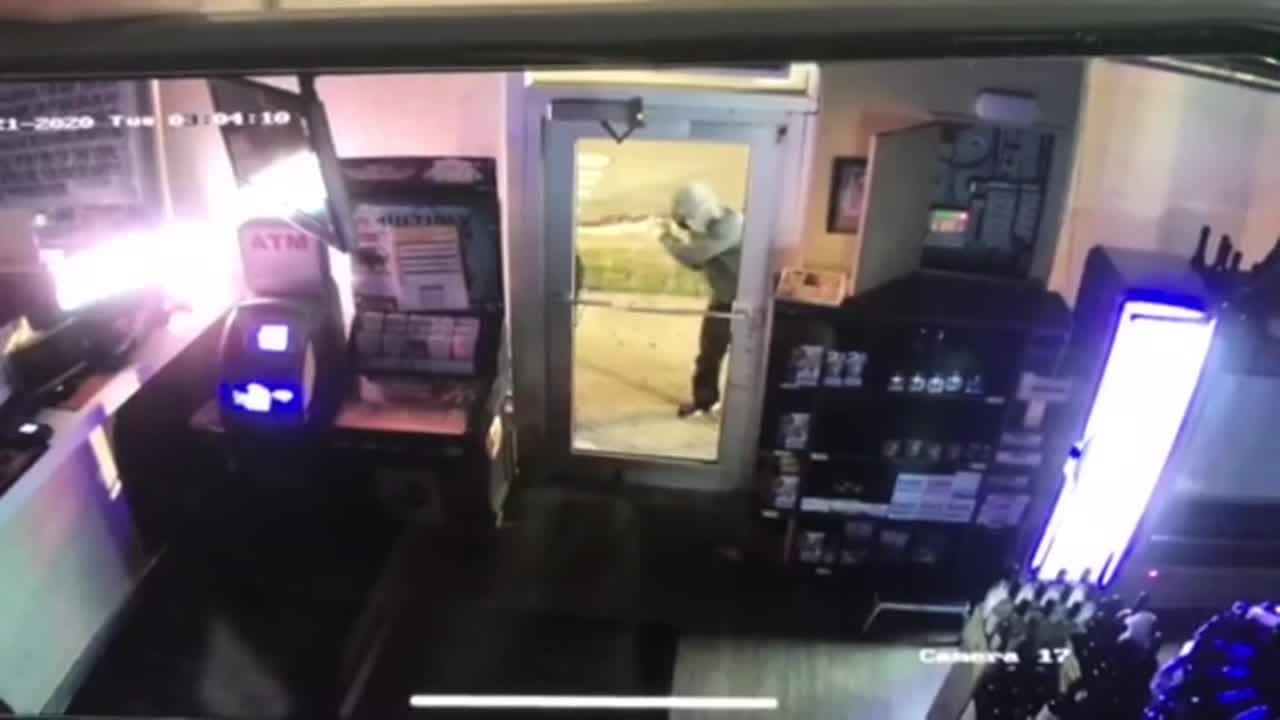 Las cámaras de seguridad del lugar captaron el momento en que los ladrones entran partiendo la puerta de vidrio y se llevan más de $5,000 en mercancías.