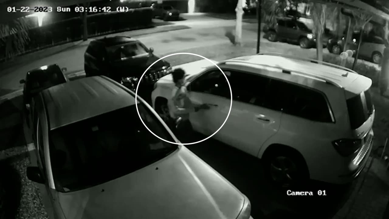 Los videos de las cámaras de seguridad, de las casas del condominio 'The Reserve at Huntington', en Miramar, muestra cómo operaron los delincuentes. En las imágenes se ve el momento cuando revisan cada carro y en tan solo 10 segundos dentro cada uno, los vandalizan. Incluso se robaron uno y lograron huir.