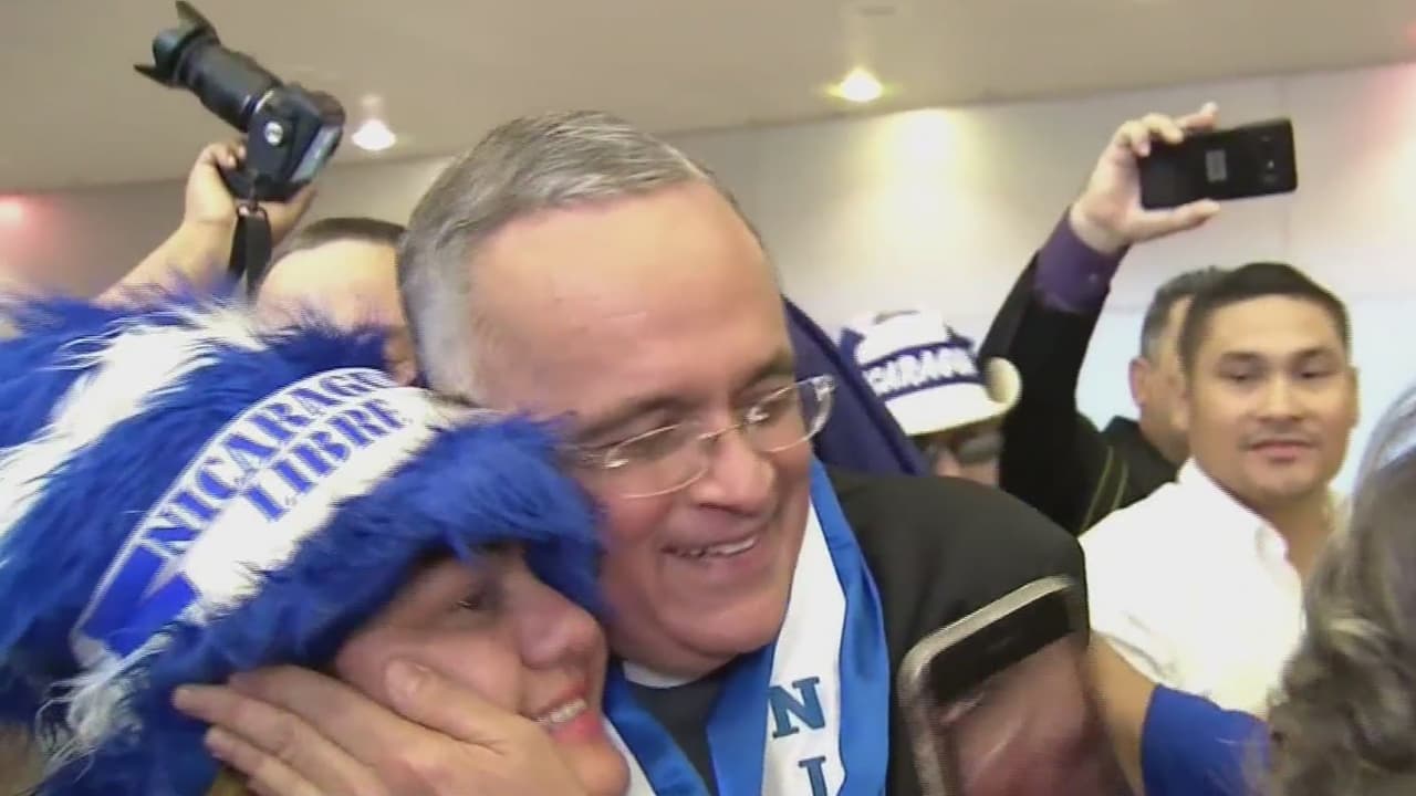 Decenas de personas se reunieron en el Aeropuerto Internacional de Miami para saludar al religioso que está amenazado de muerte por ser un fuerte opositor del gobierno de Daniel Ortega.