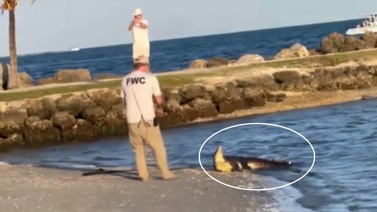 Así logran capturar un enorme cocodrilo que se baña en la orilla de la playa en un parque de Coral Gables
