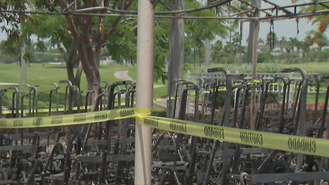 Así quedaron calcinados los carros de golf afectados por un incendio "intencional" en Miami