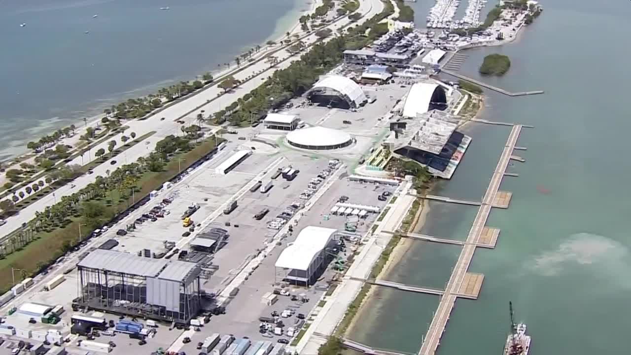 Así se ve desde el aire el montaje del festival de música ‘Ultra’ en Virginia Key