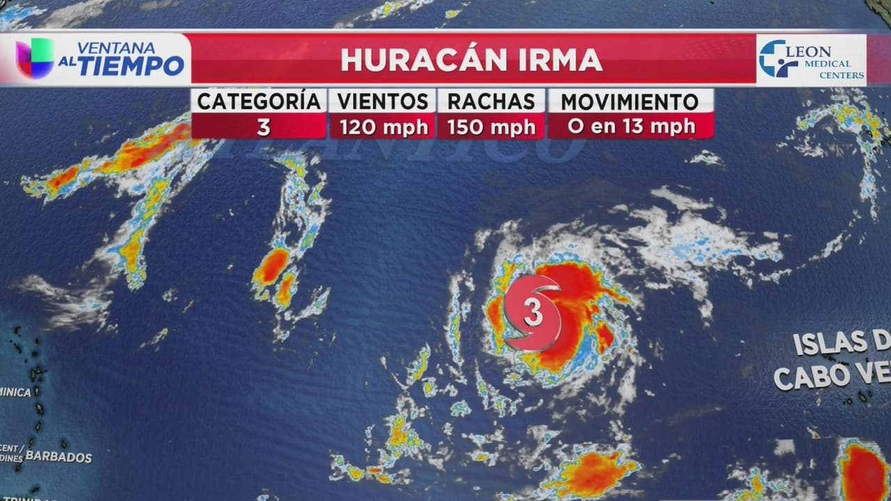El fenómeno meteorológico que continúa como categoría 3 se mueve a 120 millas por hora y podría llegar la tarde del miércoles como categoría 4 a las Antillas Menores.