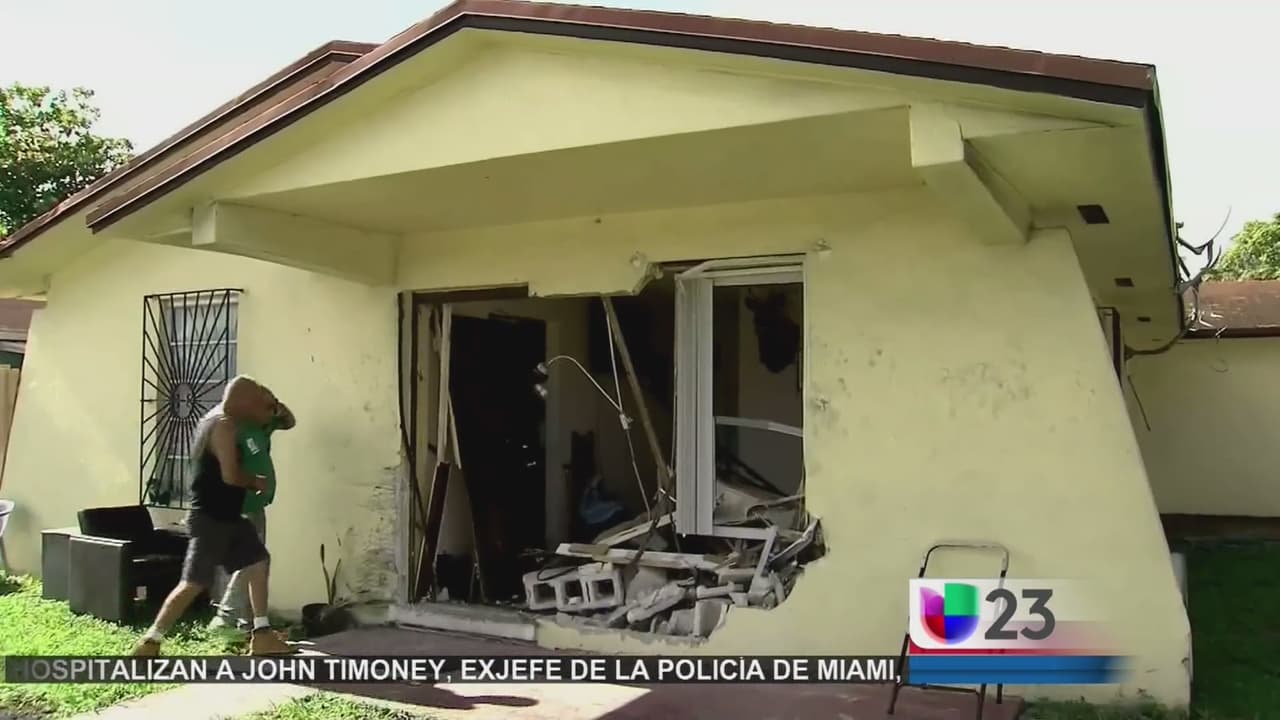 Un automóvil se impactó contra una casa en el noroeste de Miami lesionando a una mujer que estaba en el interior de la vivienda viendo televisión.