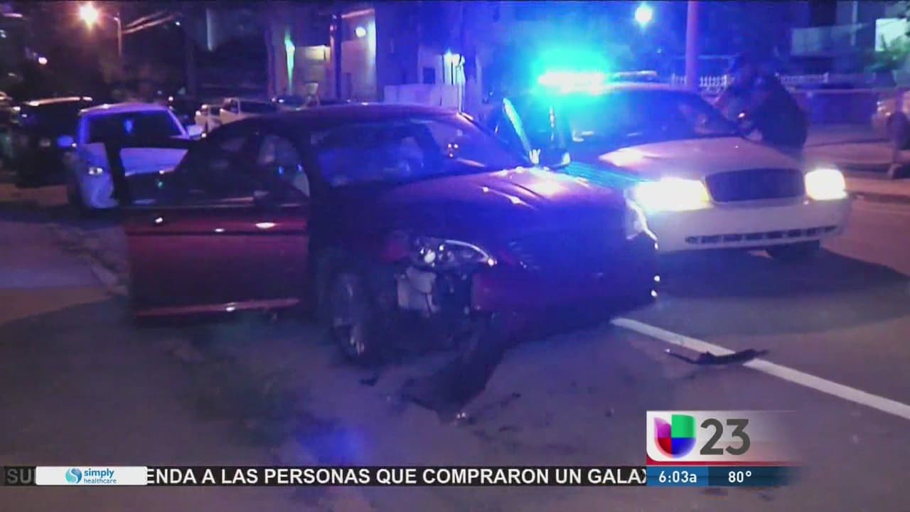 Una persecución policiaca terminó con una oficial en el hospital, tres patrullas chocadas y un sospechoso huyendo de las autoridades en la Pequeña Habana.