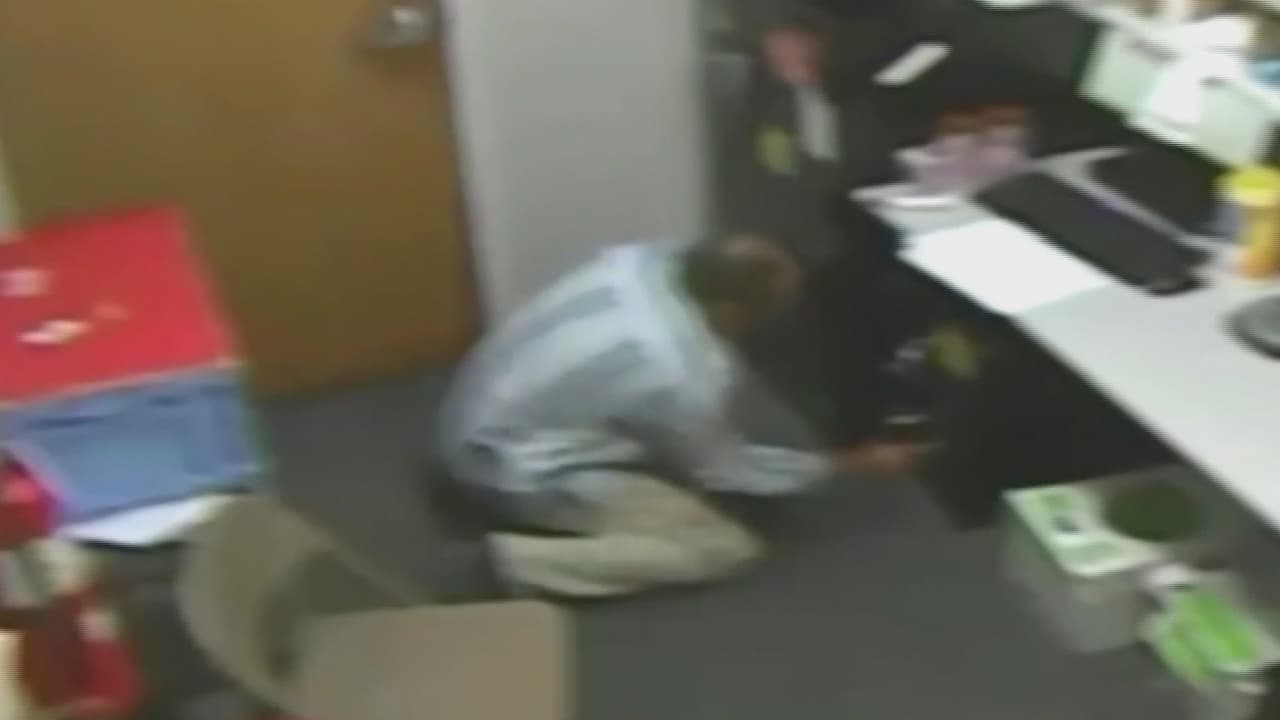 Una cámara de seguridad registra el momento en el que el sospechoso abre una caja fuerte y se lleva una gran cantidad de dinero. La policía pide a la comunidad algún tipo de información que permita dar con la captura del señalado.