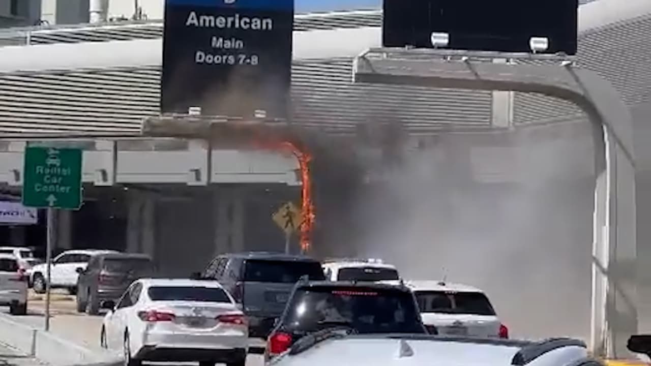 Video Se incendia torre que sostiene un aviso en el Aeropuerto Internacional de Miami
