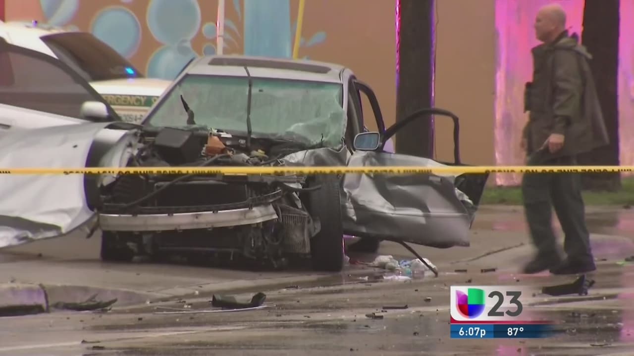 Un hombre y siete personas más se vieron afectados tras chocar violentamente contra una patrulla de la policía de Miami-Dade.