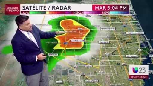 Una fuerte tormenta avanza lentamente por Miami Gardens. Hay posible reporte de caída de granizo y puede haber vientos de hasta 60 mph